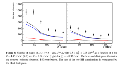 En 2016 de nouveaux résultats en Deep VCS sur le neutron ont été obtenus par Meriem BenALi dans sa partie de thèse encadrée par Malek Mazouz (Univ. de Monastir, Tunisie). La figure ci-dessus est tirée de la référence : M.Benali and M.Mazouz, "DVCS off the Neutron : E08-025 Jlab Hall A Experiment", PoS SPIN2018 (2019) 069. Elle montre pour la première fois une section efficace non-nulle pour le processus DVCS sur le neutron.